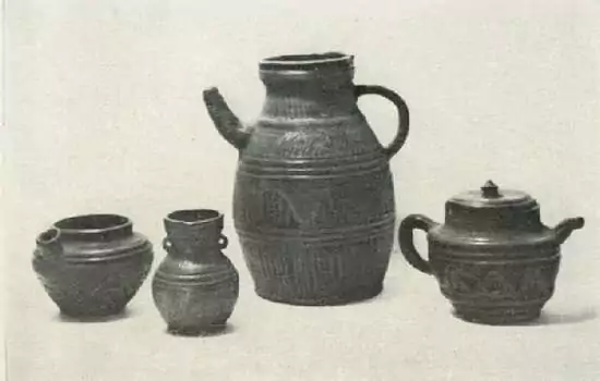 Изготовленную посуду складывали на полки, где она подсыхала 5—6 дней. После чего ее обрабатывали, а затем приступали к обжигу.